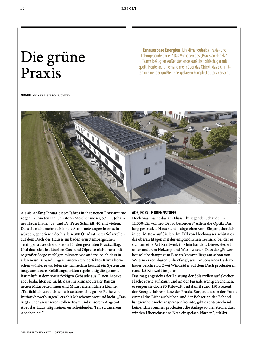 27.10.2022 // Bericht im Magazin "Der frei Zahnarzt", Ausgabe Oktober 2022