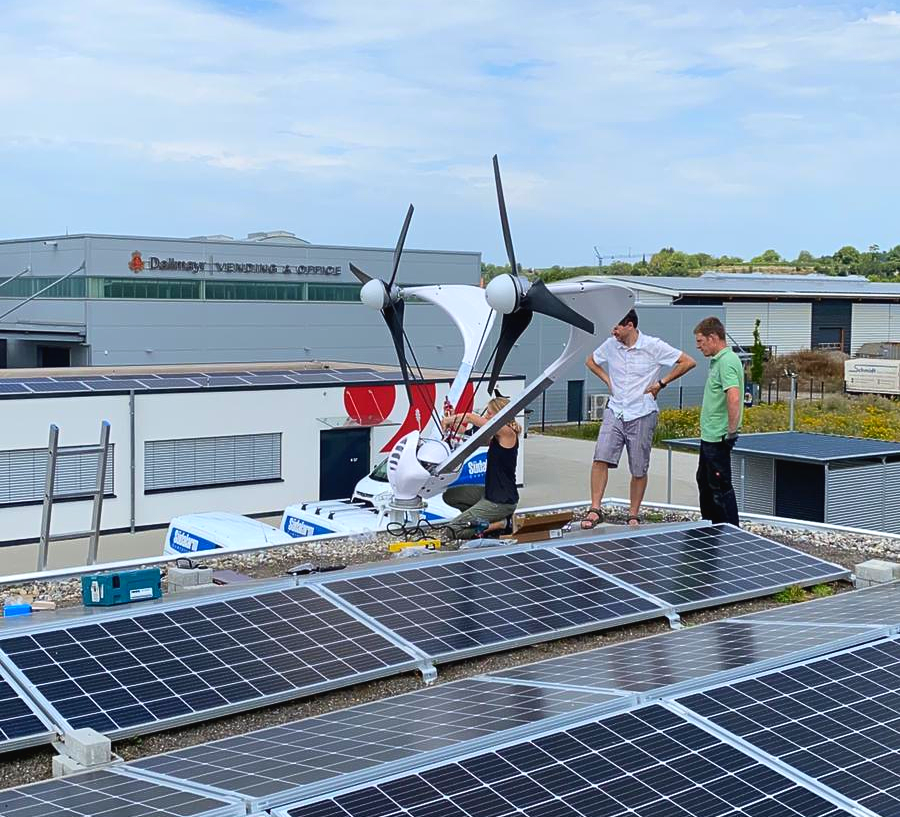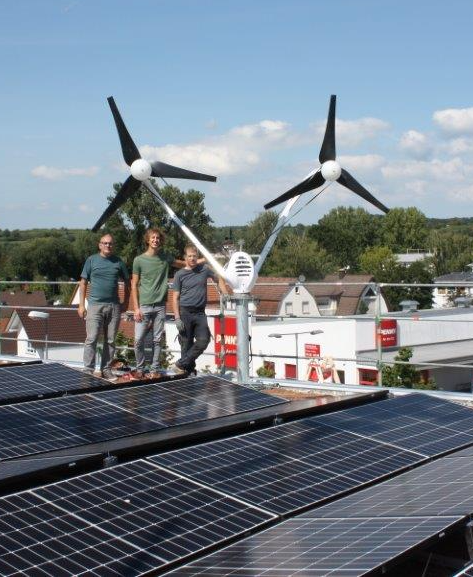 Eine Teninger Zahnarztpraxis baut auf Solarstrom und Windrotoren "on top": Zwei Windrotoren sorgen auf dem Dach des Praxisgebäudes zusammen mit Solarpaneelen für eine autarke Versorgung.