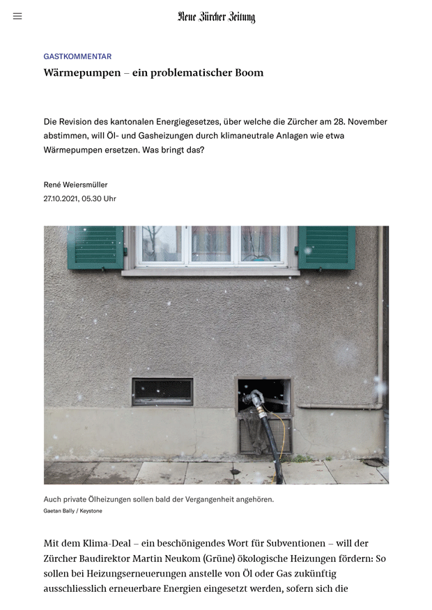 27.10.2021 // Gastkommentar in der NZZ von René Weiersmüller